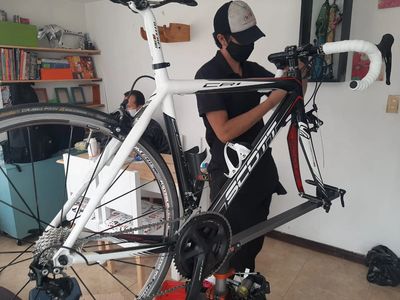 Trabajamos en el espacio que tú nos dispongas el servicio toma 2 horas aproximadamente puedes ver el paso a paso del mantenimiento de tu bicicleta , o si deseas ajustes especiales lo podrás hacer
